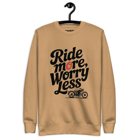 Ride More Worry Less Motorcycle Sweatshirt β Retro Biker Typography Sweatshirt